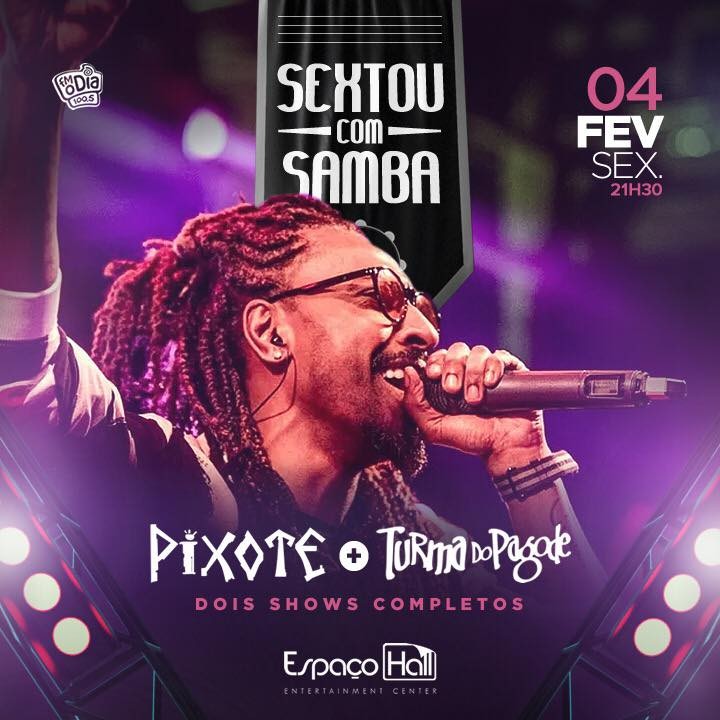 On 02/02/2022 by Fabio Gomes(foto: Divulgação) Na próxima sexta-feira (dia 4) é a vez dos grupos Pixote e Turma do Pagode agitarem mais uma edição do projeto “Sextou com samba”, no palco do Espaço Hall a partir das 22h. O grupo Pixote é uma das grandes atrações da noite e sua formação conta com Dodô, Tiola e Thiaguinho. Para