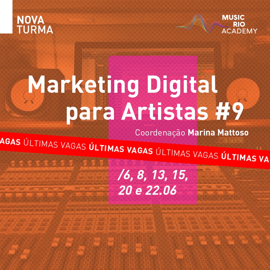 On 02/06/2022 by Fabio GomesSucesso absoluto em mais uma edição, o curso de Marketing Digital Para Artistas da Music Rio Academy chega em suas últimas vagas. Ministrado e coordenado por Marina Mattoso, sócia da Jangada Comunicação, agência de marketing digital voltada para o mercado do entretenimento, o curso tem como objetivo proporcionar aos participantes os conceitos técnicos e criativos