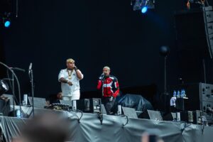 Logo no início, Hariel anunciou que aquele seria um dia histórico para o gênero, preparando o público para uma apresentação repleta de sucessos. O setlist passeou por diferentes fases da carreira de cada um, incluindo “Ilusão”, “Vergonha Pra Mídia”, “Meu Mundo” e “Lei do Retorno”. Entre os momentos de maior destaque esteve “Tubarão Te Amo”, quando Ryan SP pediu que todos levantassem as mãos em formato de coração, criando uma cena emocionante diante do Skyline lotado.