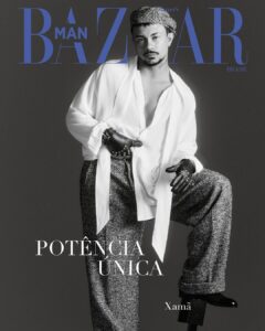 Xamã é uma das capas da edição de julho da Harper’s Bazaar Man, que destacou a versatilidade do artista ao afirmar que ele “atravessa mundos como quem troca de pele: do vagão ao horário nobre, do improviso ao figurino”.